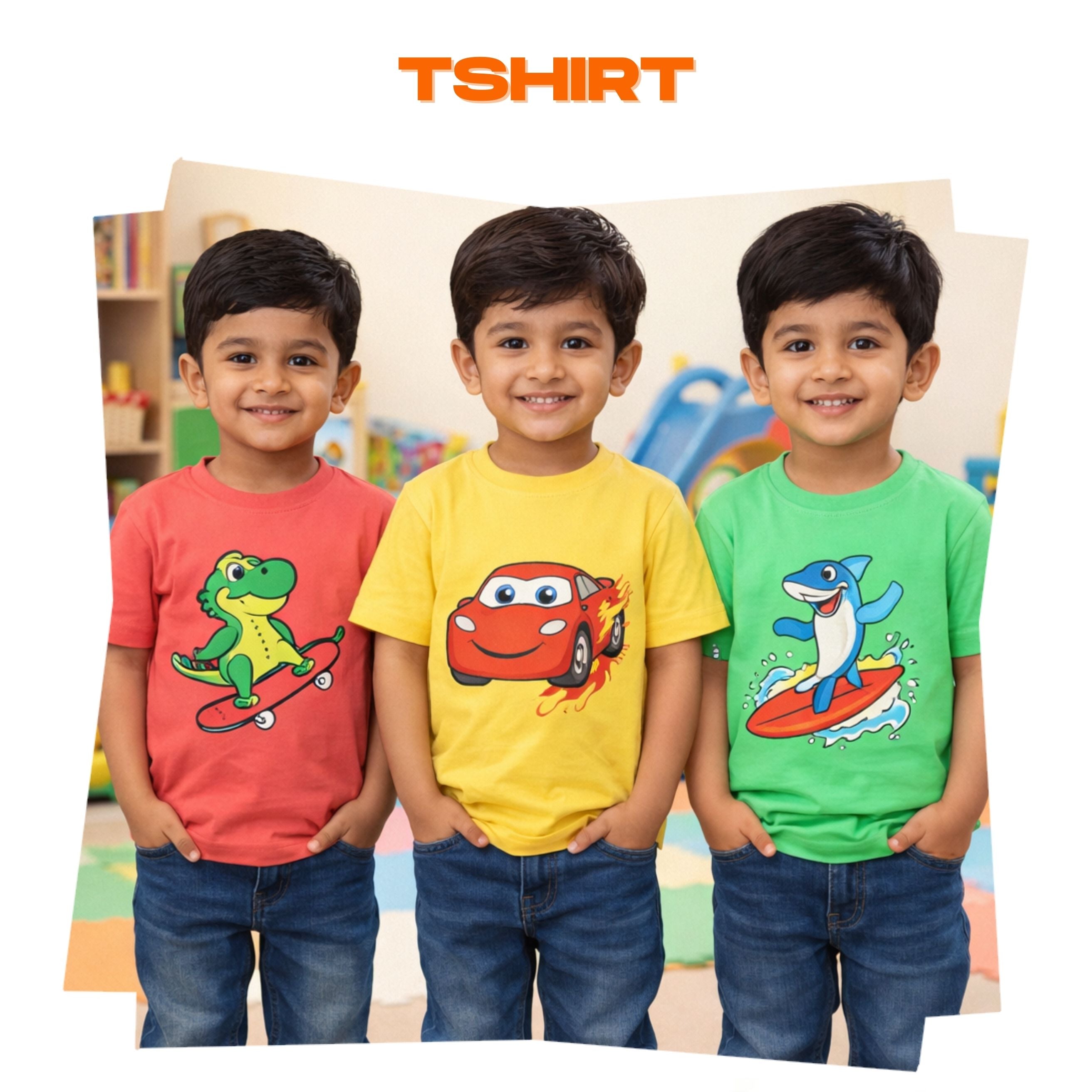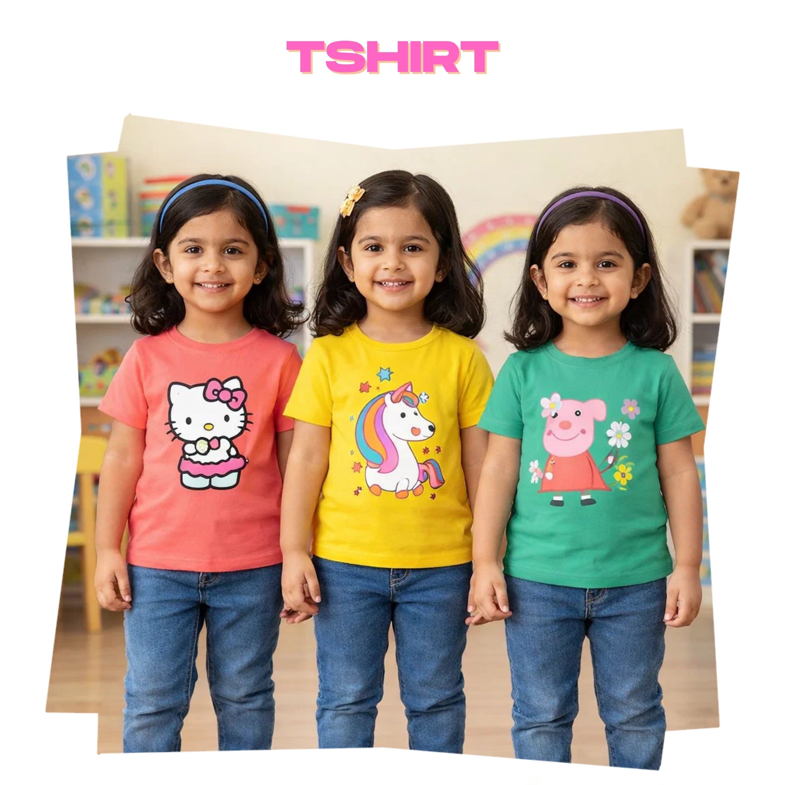 Kids Cotton Girls Tshirt With Cartoon Print Multi Color | Age 0 to 6 Years (Pack of 3 Pieces)