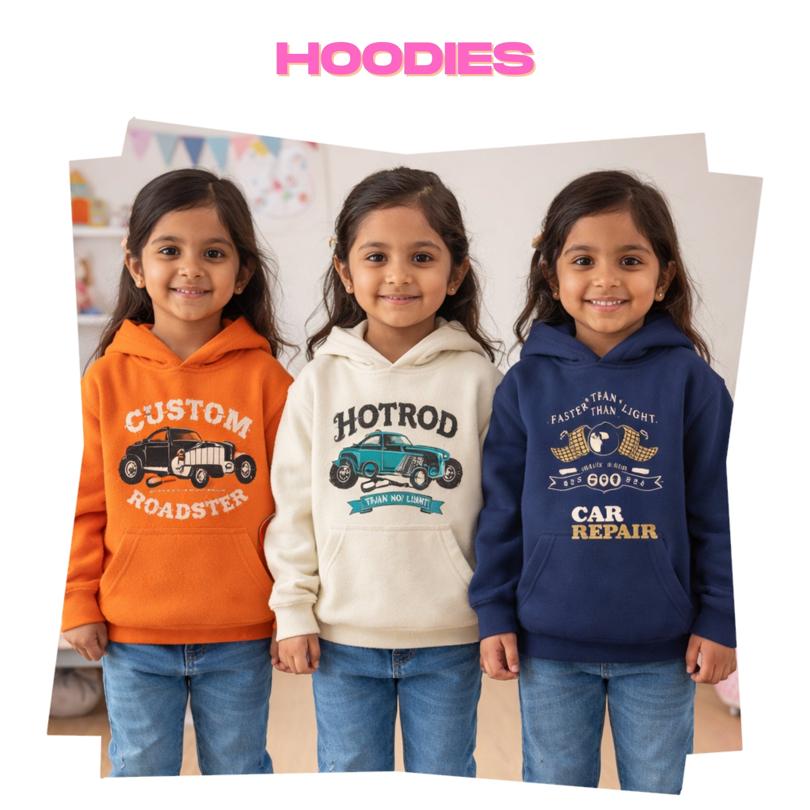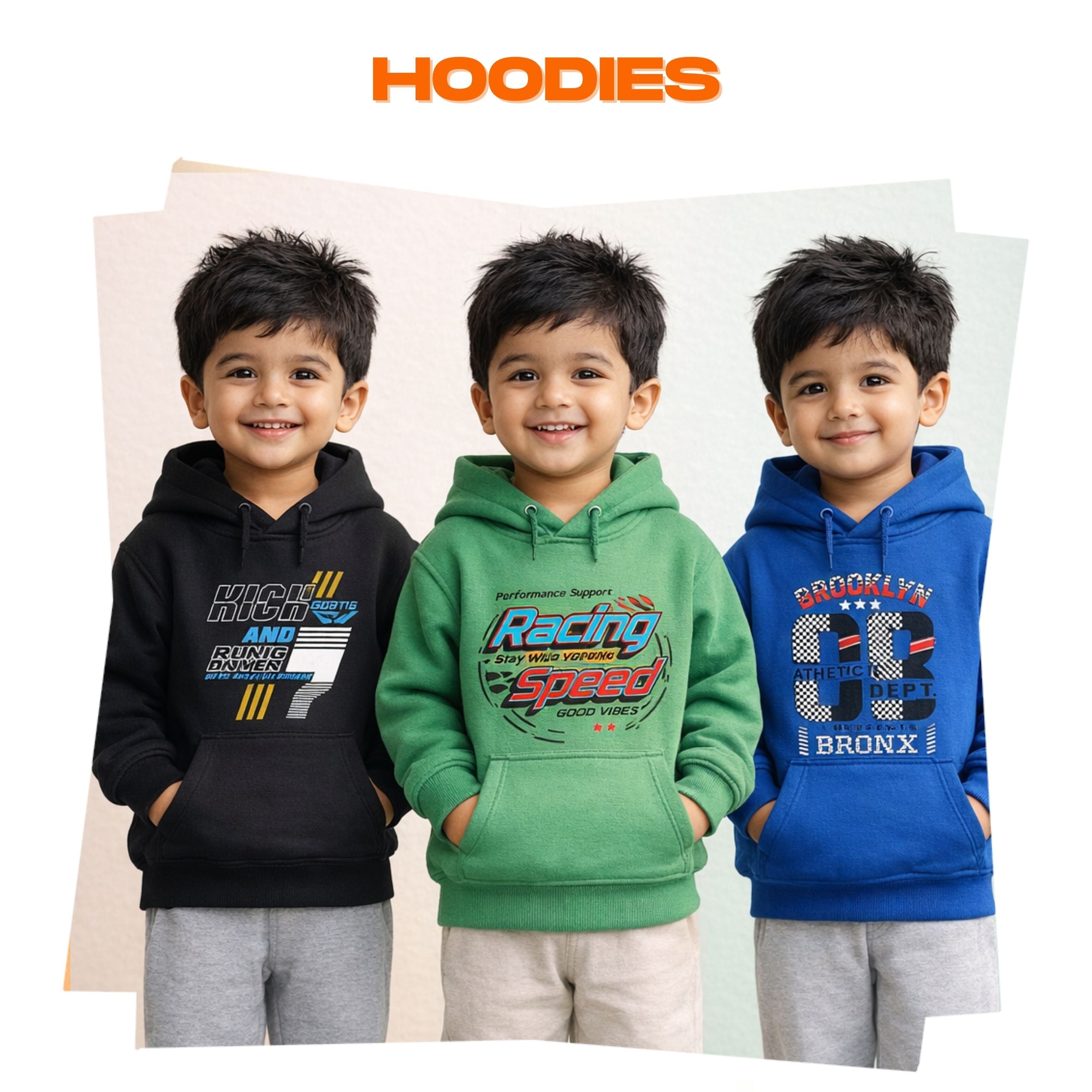 Cotton Kids Hoodie Printed Multi Colour | Age 3 to 6 Years | (Pack of 3 Pieces)