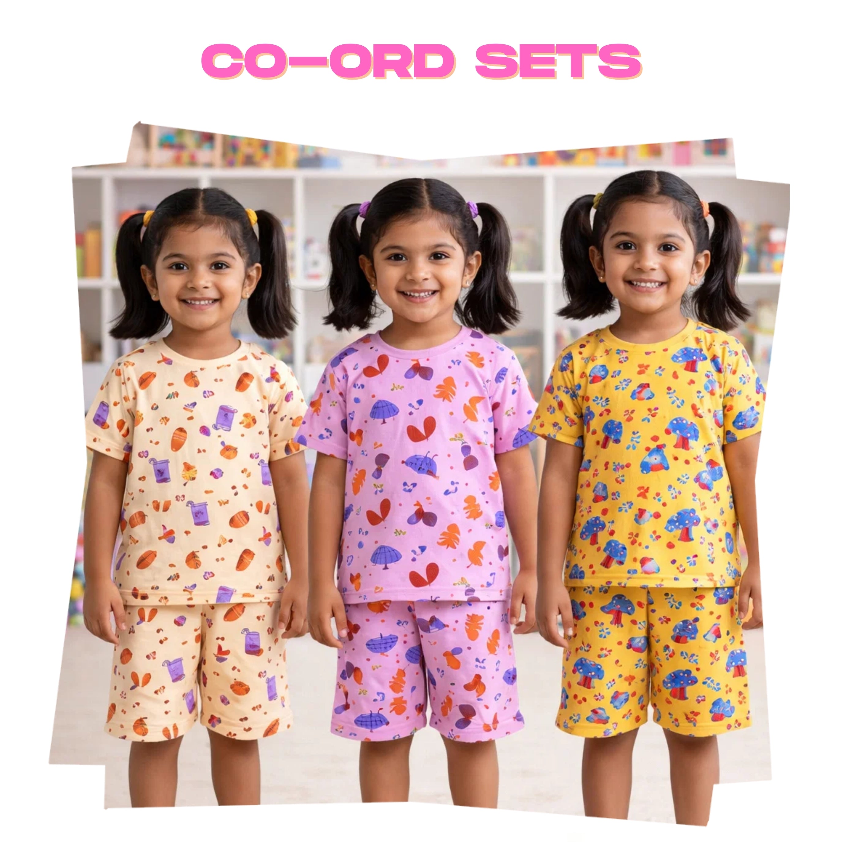 Girls Cotton Stripes Kids Co-ord Set Combo / Age 1-4 Years (Tshirt & Shorts Set Pack of 3)