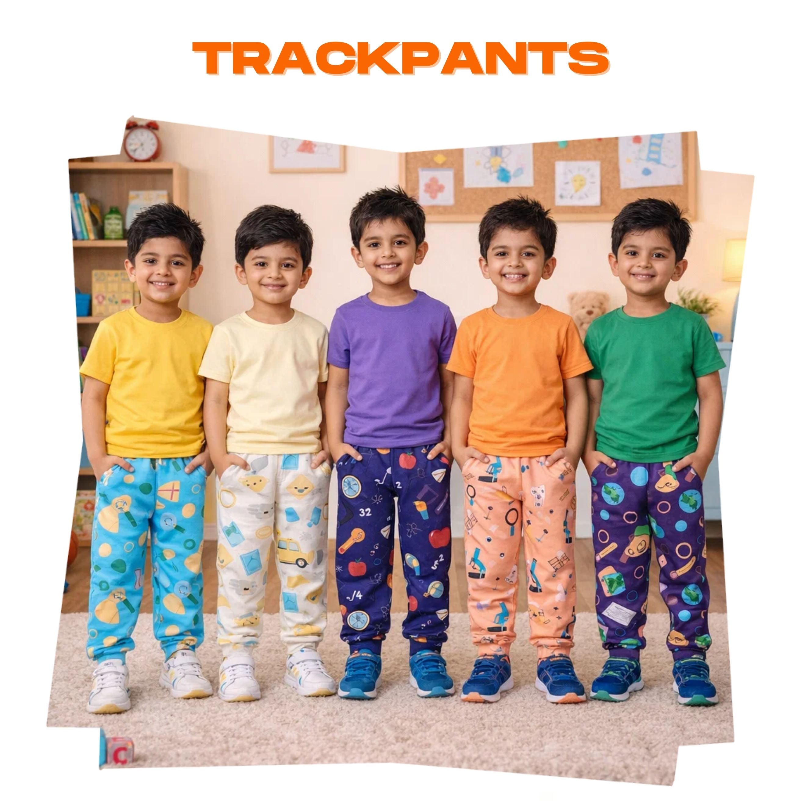 Pure Cotton Printed Track Pant for Casual Night wear for Kids | Age 0 To 8 Years (Pack of 5)