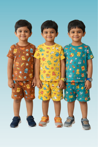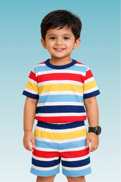 Boys Cotton Stripes Kids Co-ord Set Combo / Age 1-4 Years | Tshirt & Shorts (Combo Set Pack of 3)