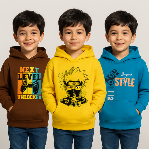 Cotton Kids Hoodie Printed Multi Colour | Age 3 to 6 Years | (Pack of 3 Pieces)